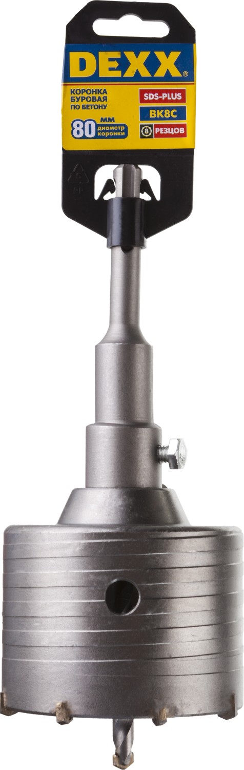 Коронка DEXX буровая в сборе, SDS-plus хвостовик, d 80мм, арт. 29215-80