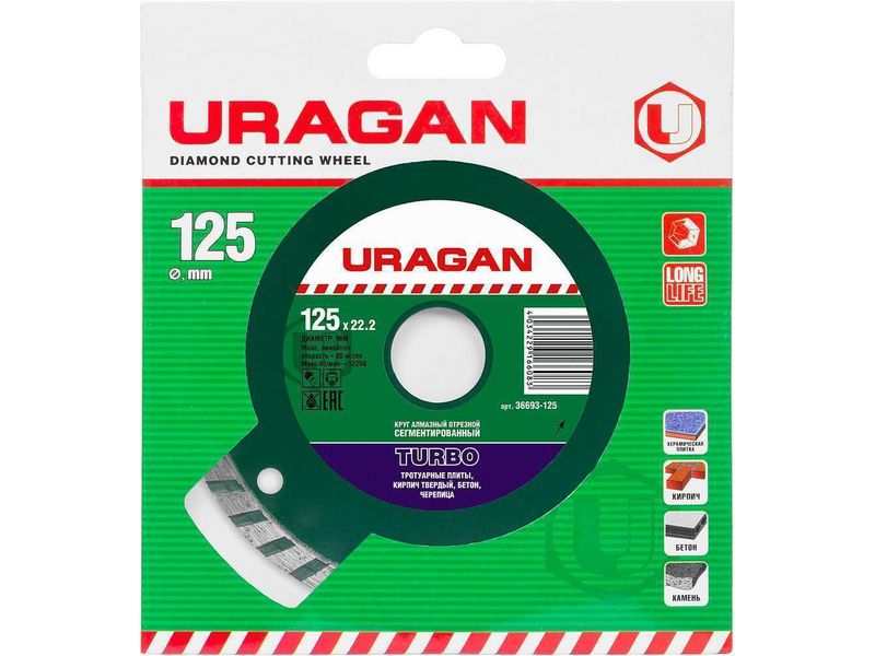 Неоспоримым преимуществом отрезных алмазных кругов URAGAN является их высокая производительность, увеличенный рабочий ресурс и универсальность применения при обработке различных строительных материалов.